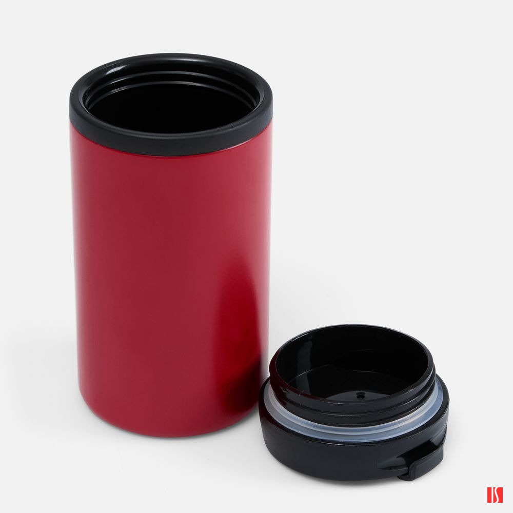 Двухслойная конструкция из пищевого пластика внутри и нержавеющей стали снаружи. Герметичная завинчивающаяся крышка с откидным клапаном для питья.