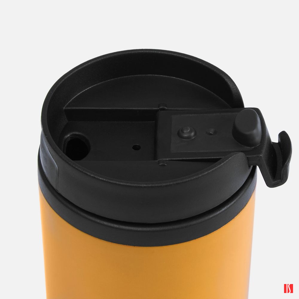 Двухслойная конструкция из пищевого пластика внутри и нержавеющей стали снаружи. Герметичная завинчивающаяся крышка с откидным клапаном для питья.