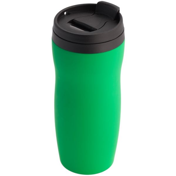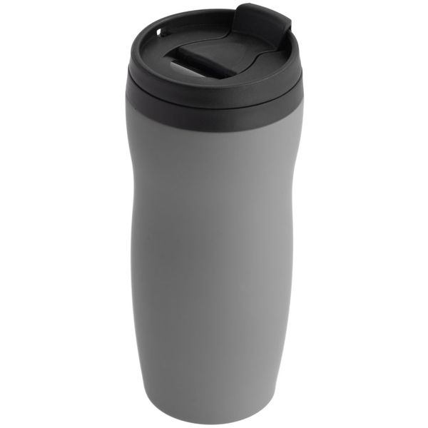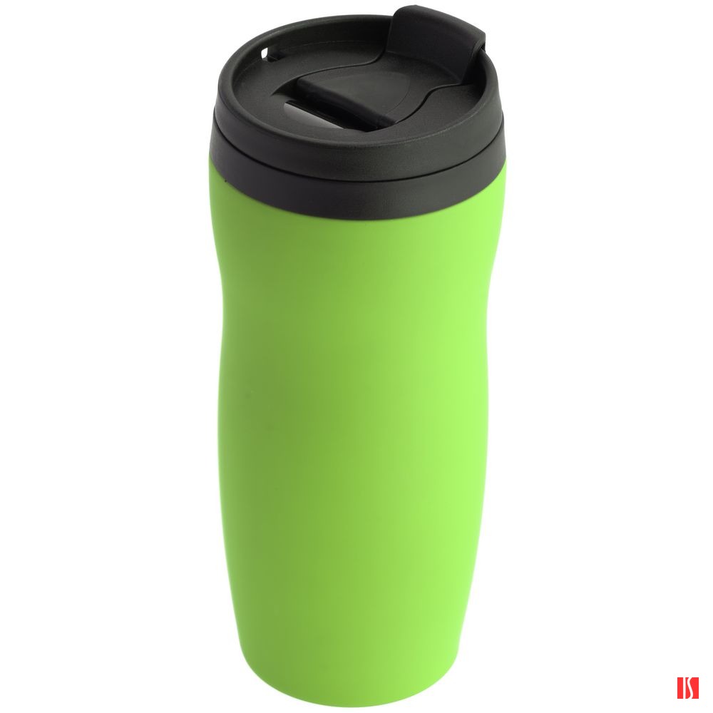 Двухслойная конструкция из нержавеющей стали снаружи и пищевого пластика внутри. Герметичная завинчивающаяся крышка с откидным клапаном для питья. Покрытие софт-тач. В отверстие в крышке можно вставить шнурок для удобного ношения стакана на руке. Шнурок в комплект не входит.