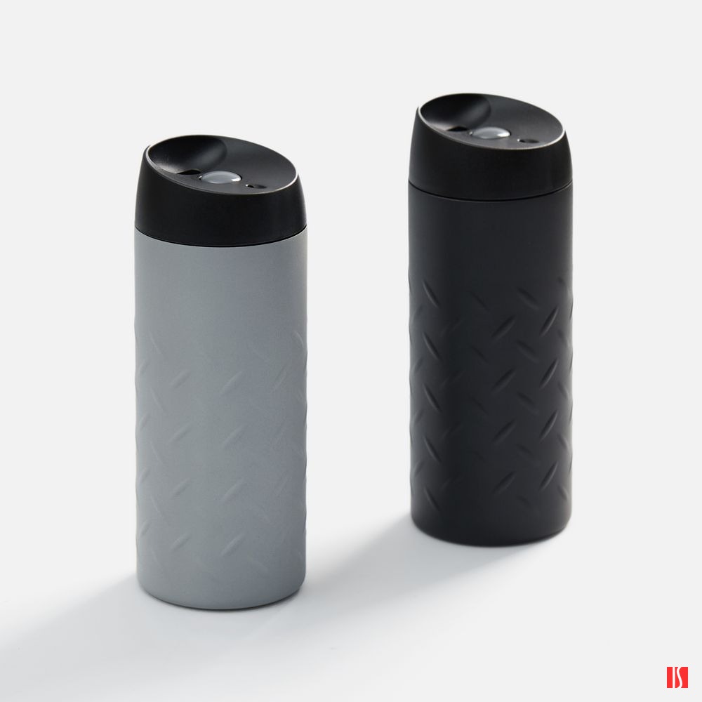 Двухслойная вакуумная конструкция из нержавеющей стали. Герметичная завинчивающаяся крышка с нажимным клапаном для питья. Стакан подходит для большинства автомобильных подстаканников.