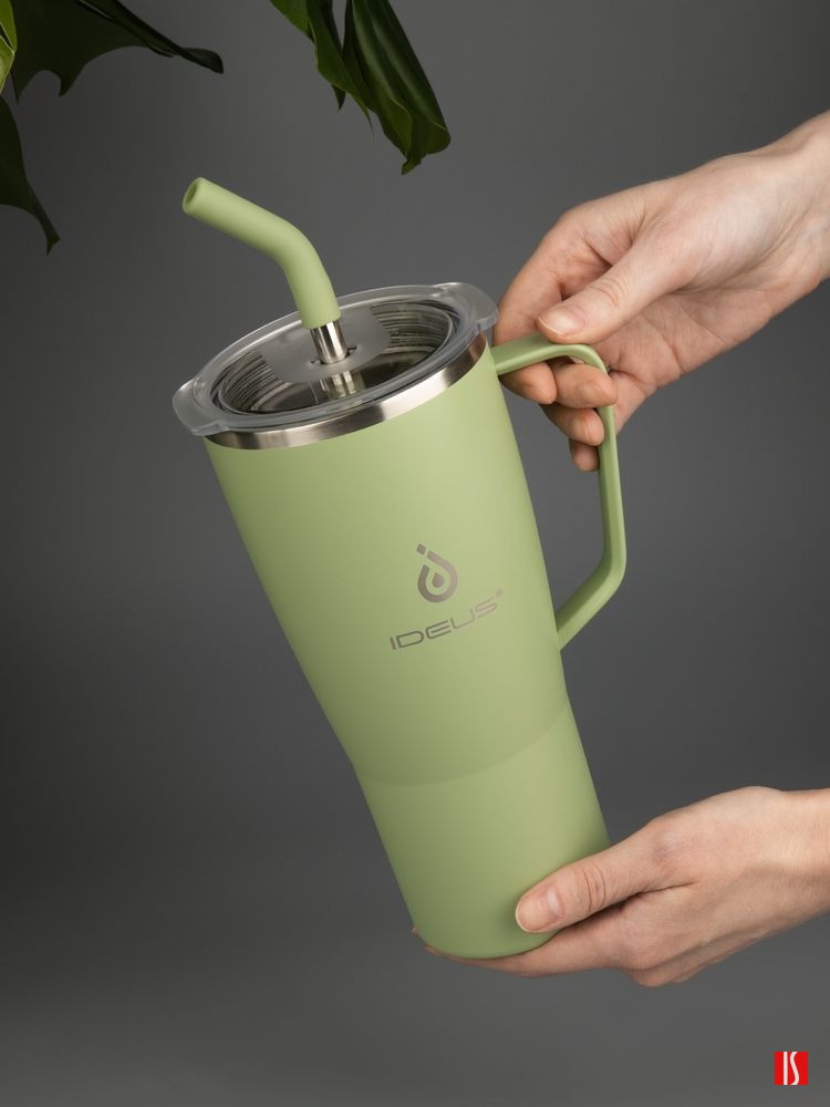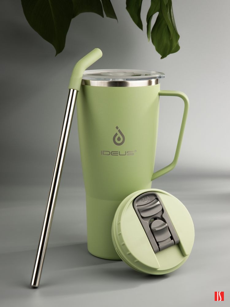 - 2 крышки в комплекте: одна на 100% герметичная с механизмом блокировки отверстия для питья, вторая — с отверстием для трубочки