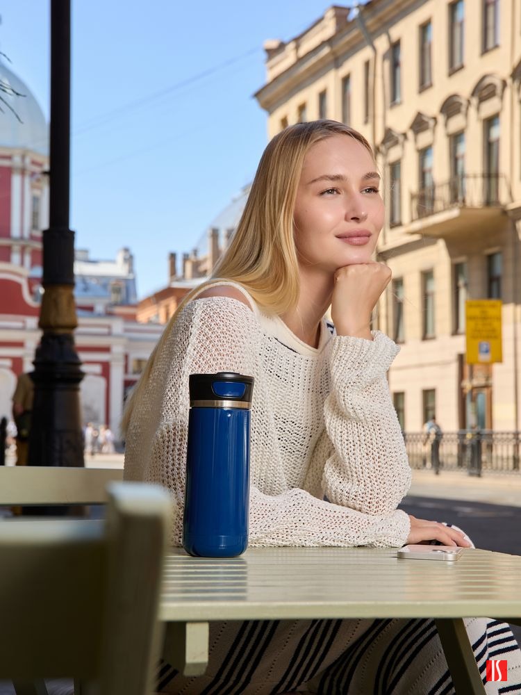 - Специальная система открывания клапана JustPushTheButton: чтобы открыть клапан для питья, нужно нажать боковую кнопку, чтобы закрыть, нужно нажать кнопку сверху крышки