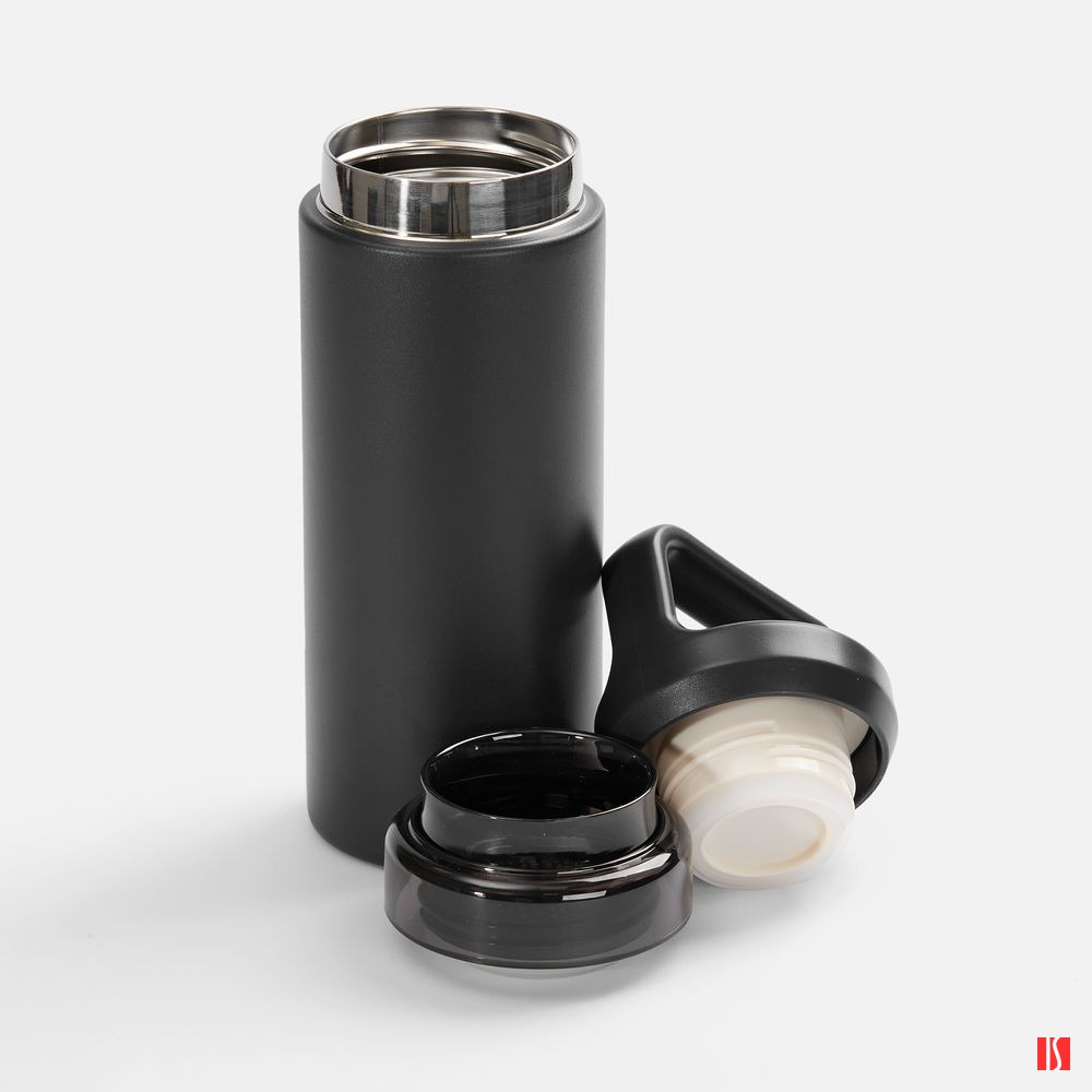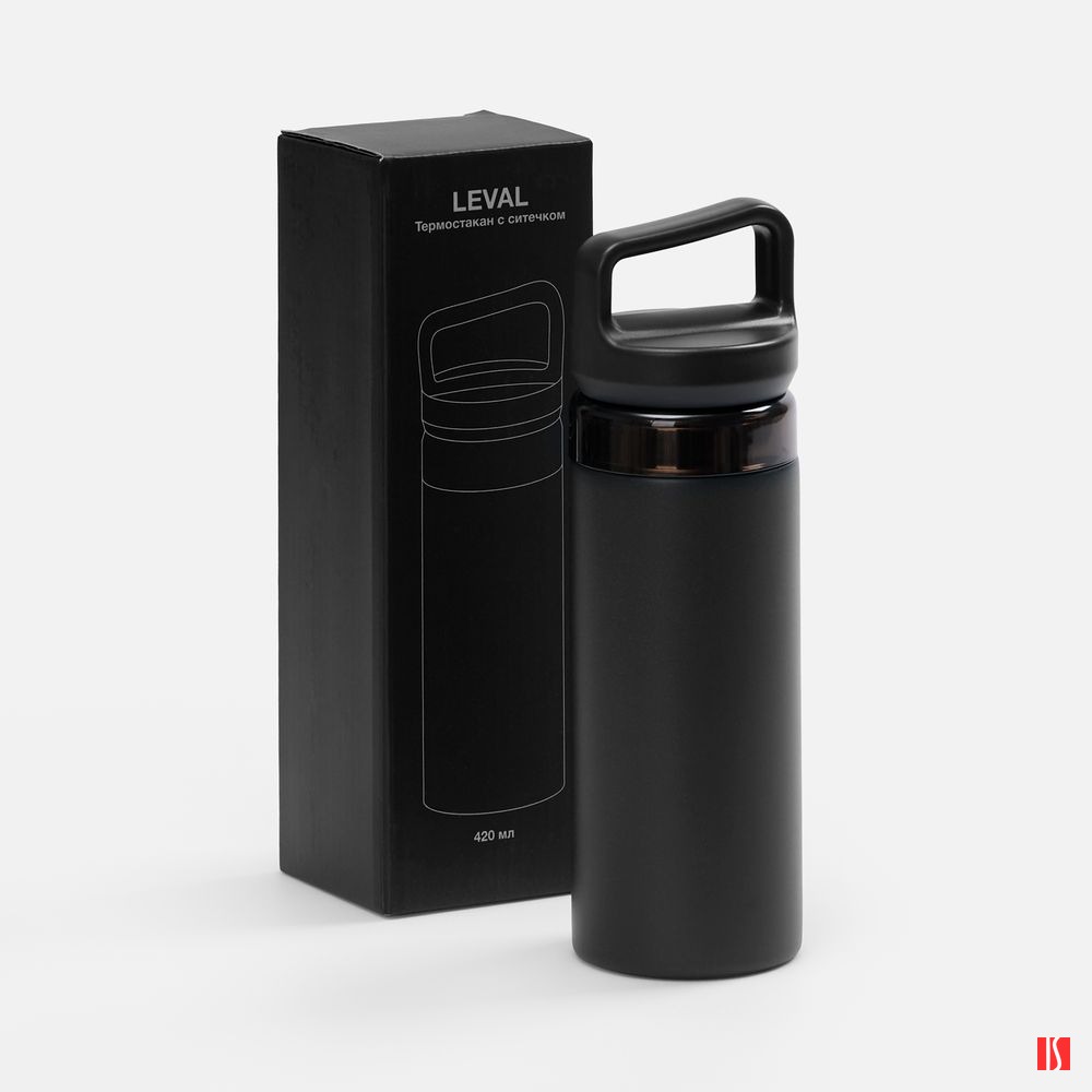 Заказать с нанесением логотипа от компании «Синтезис». Термостакан Leval компактного размера с ситечком, удобной ручкой для переноски и надежной завинчивающейся крышкой — идеальный спутник на каждый день, готовый всегда поддерживать своего владельца горячим чаем, кофе или освежающей прохладной водой.