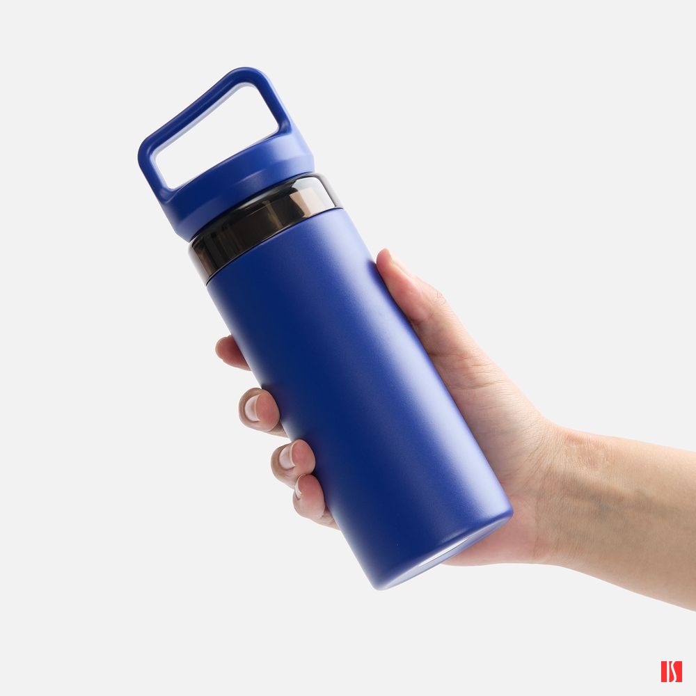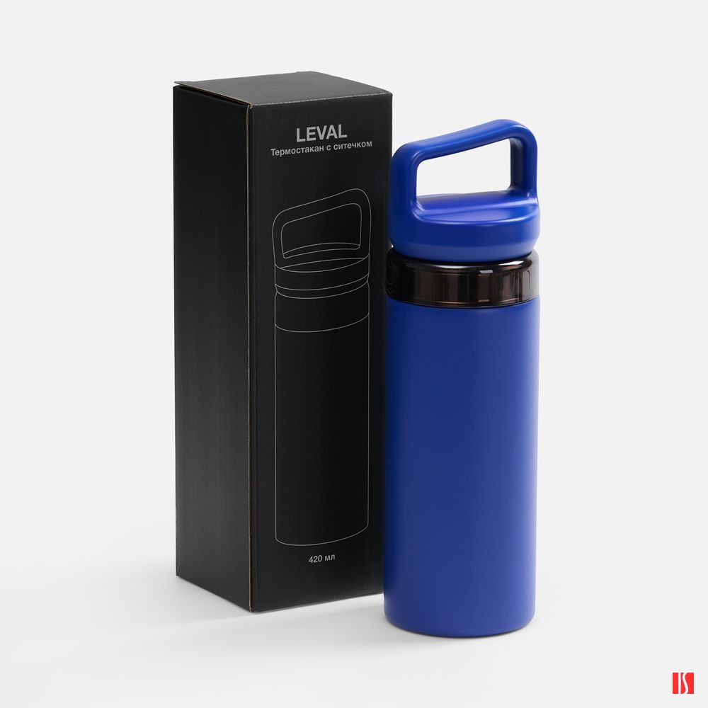 Заказать с нанесением логотипа от компании «Синтезис». Термостакан Leval компактного размера с ситечком, удобной ручкой для переноски и надежной завинчивающейся крышкой — идеальный спутник на каждый день, готовый всегда поддерживать своего владельца горячим чаем, кофе или освежающей прохладной водой.