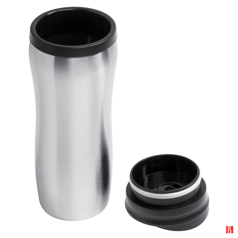 Двухслойная конструкция из пластика внутри и нержавеющей стали снаружи сохраняет напитки горячими в течение 1 часа, холодными — 2 часов.