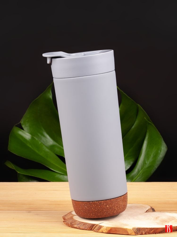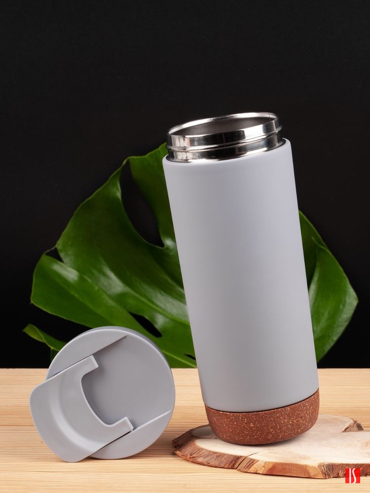 Заказать с нанесением логотипа от компании «Синтезис». Контраст текстурной пробки на дне и матового покрытия делают термостакан Steady не только практичным, но и стильным подарком.