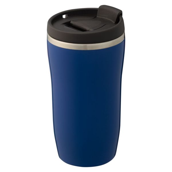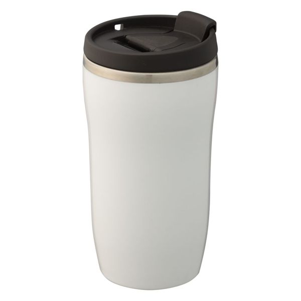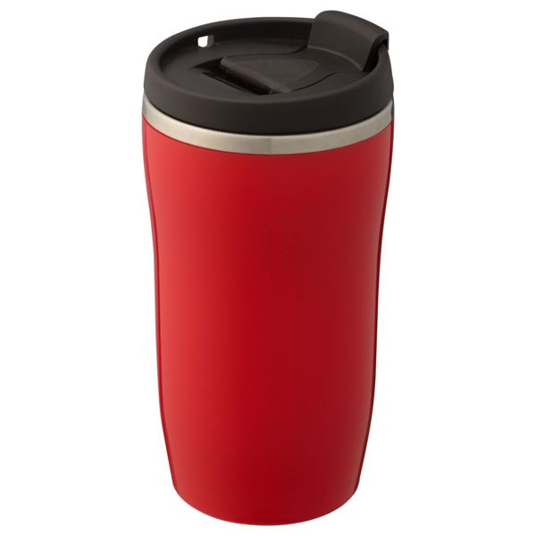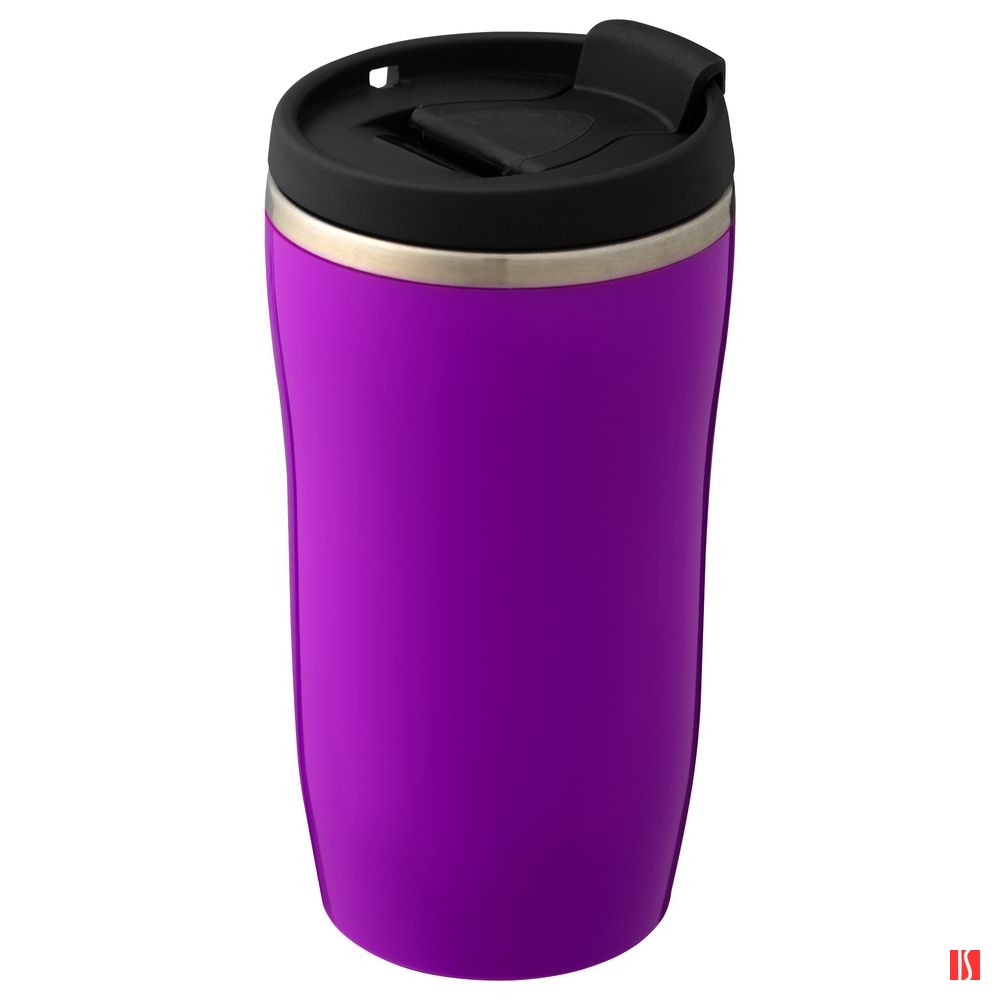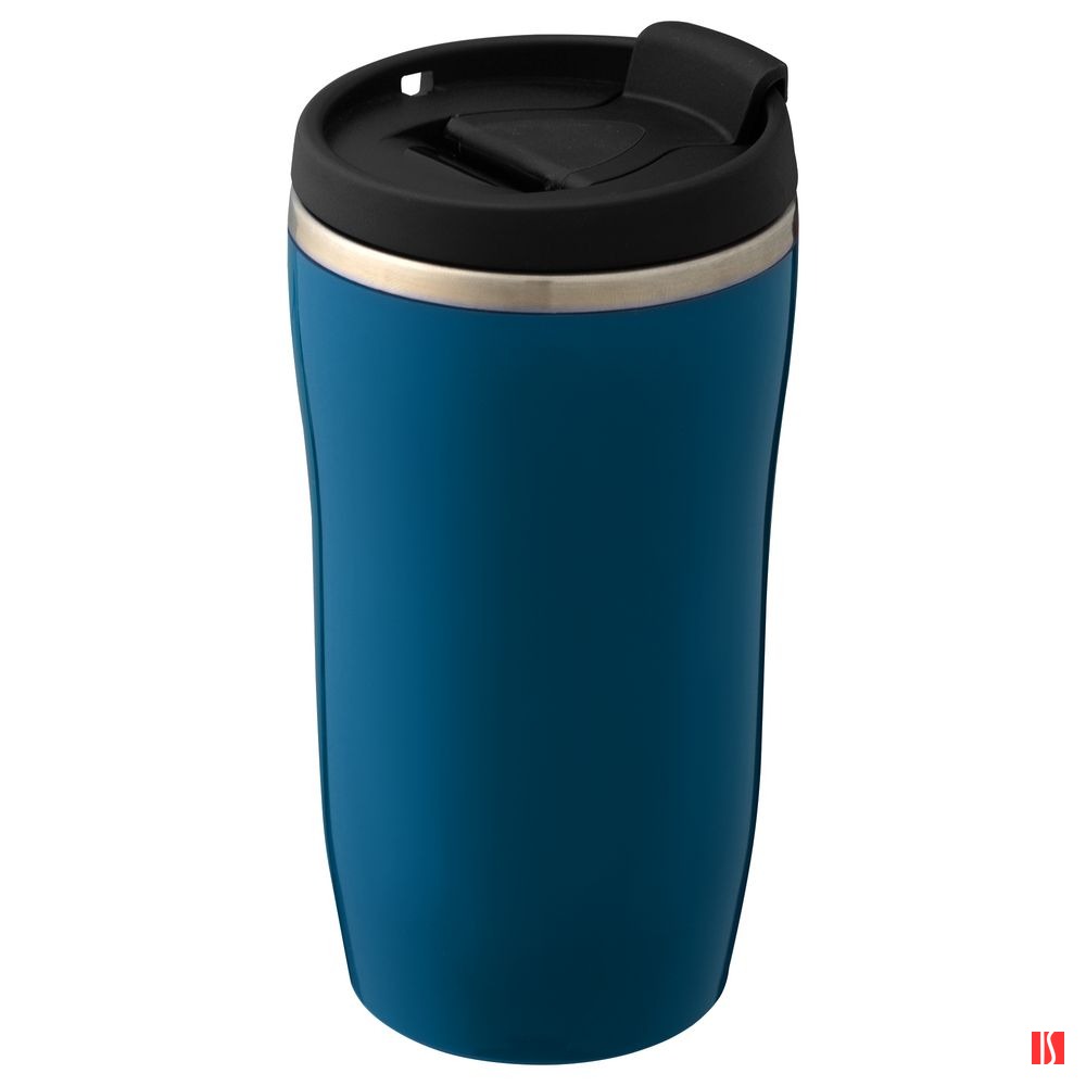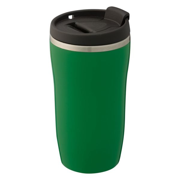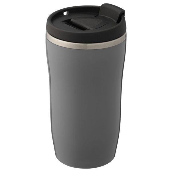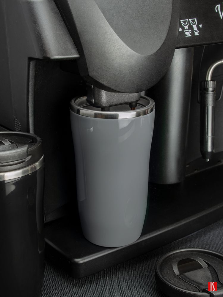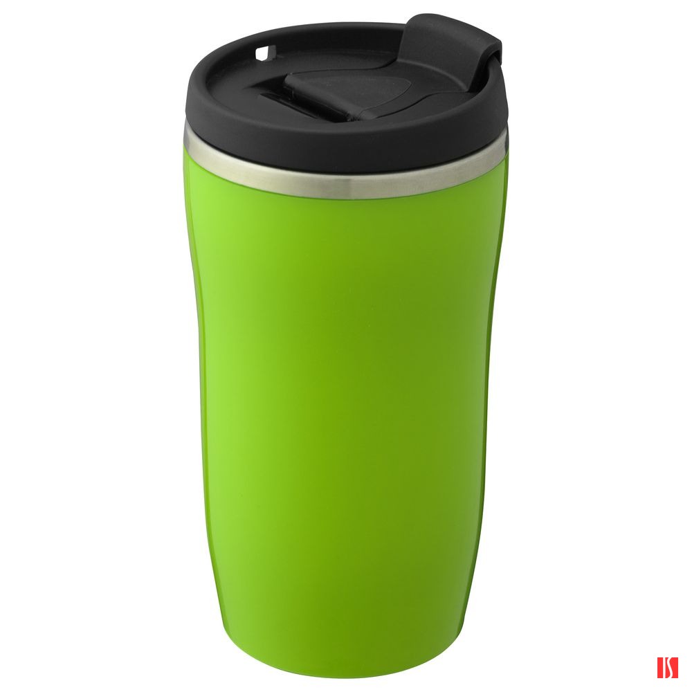 Двухслойная конструкция из пластика снаружи и пищевой нержавеющей стали внутри. Герметичная завинчивающаяся крышка с откидным клапаном для питья. В отверстие в крышке можно вставить шнурок для удобного ношения стакана на руке. Шнурок в комплект не входит.