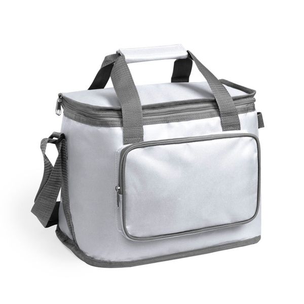 Сумка-холодильник из прочного полиэстера 600D с внутренней отделкой из PEVA (термопластик). На ручках предусмотрена вставка из нейлона для усиления прочности. Регулируемая длина наплечного ремня.