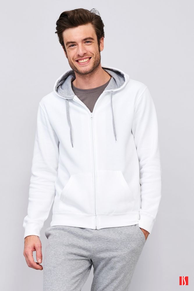 Толстовка мужская на молнии Soul Men 290 с контрастным капюшоном, белая