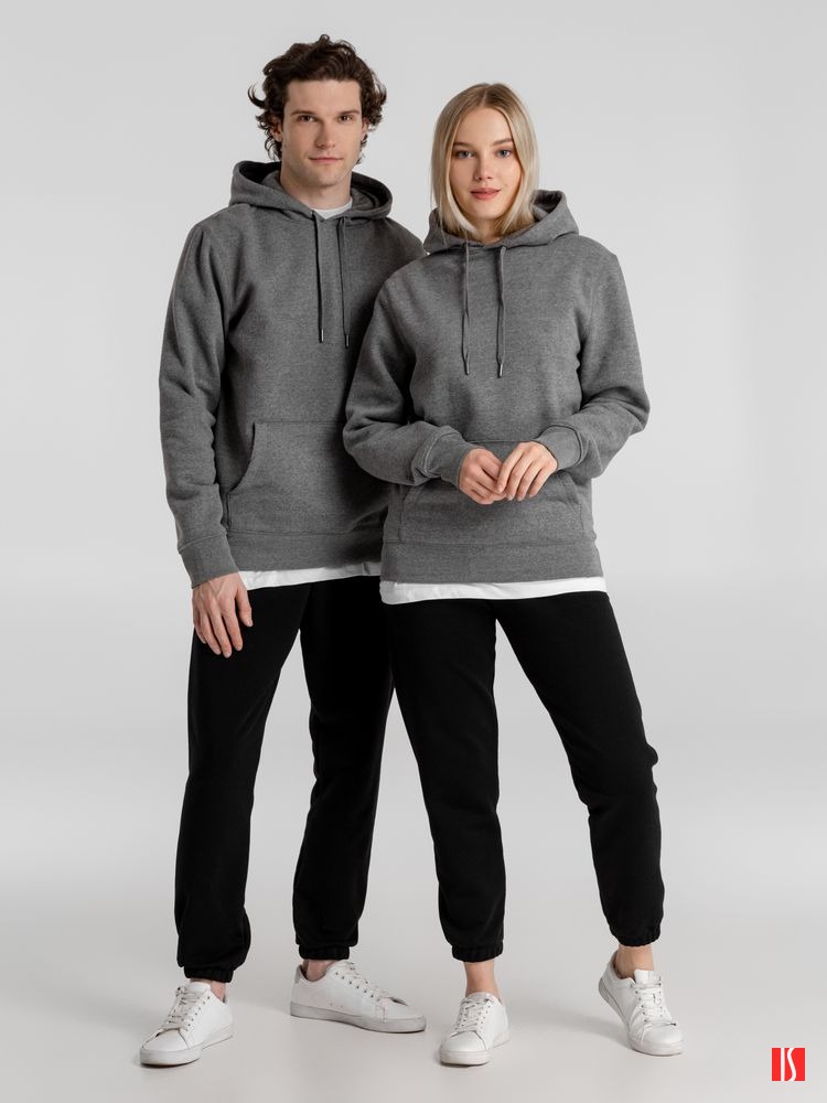 Толстовка с капюшоном унисекс King, темно-серый меланж