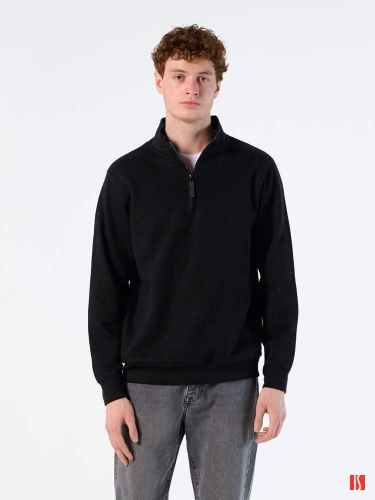 Заказать с нанесением логотипа от компании «Синтезис». Толстовка с воротником-стойкой на молнии. Лейбл производителя в боковом шве изнутри, в шве горловины - только бирка с размером, что позволяет вам нанести свой логотип.
