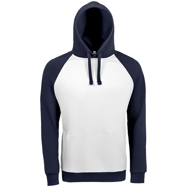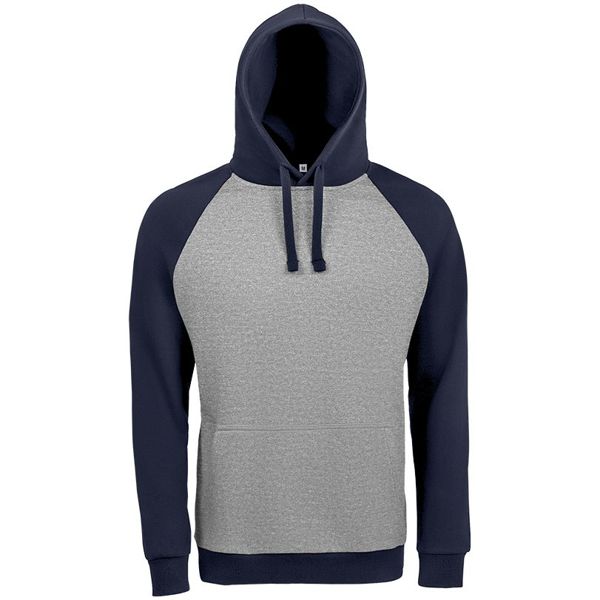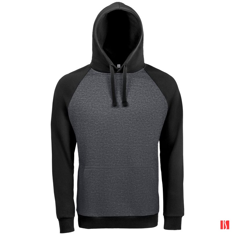 Заказать с нанесением логотипа от компании «Синтезис». Двухцветная утепленная толстовка унисекс с рукавами реглан и карманом-кенгуру.