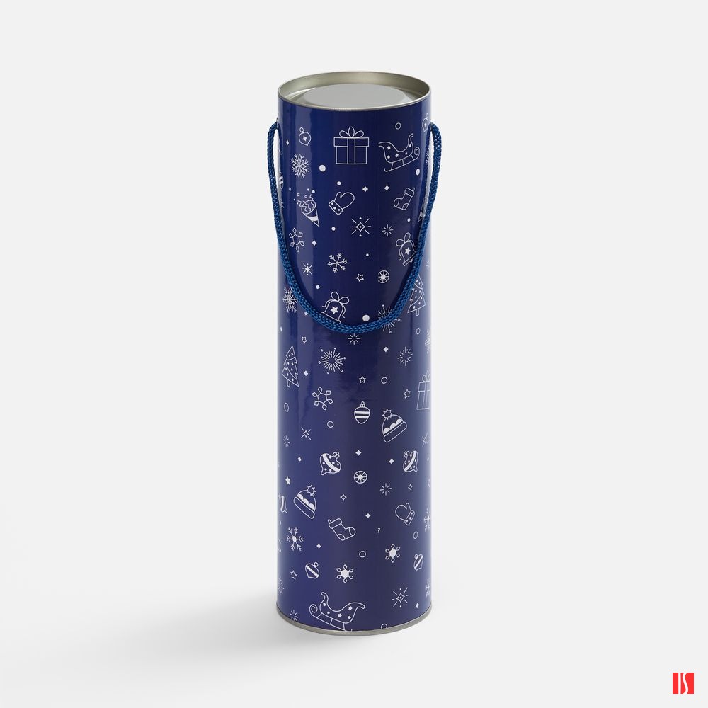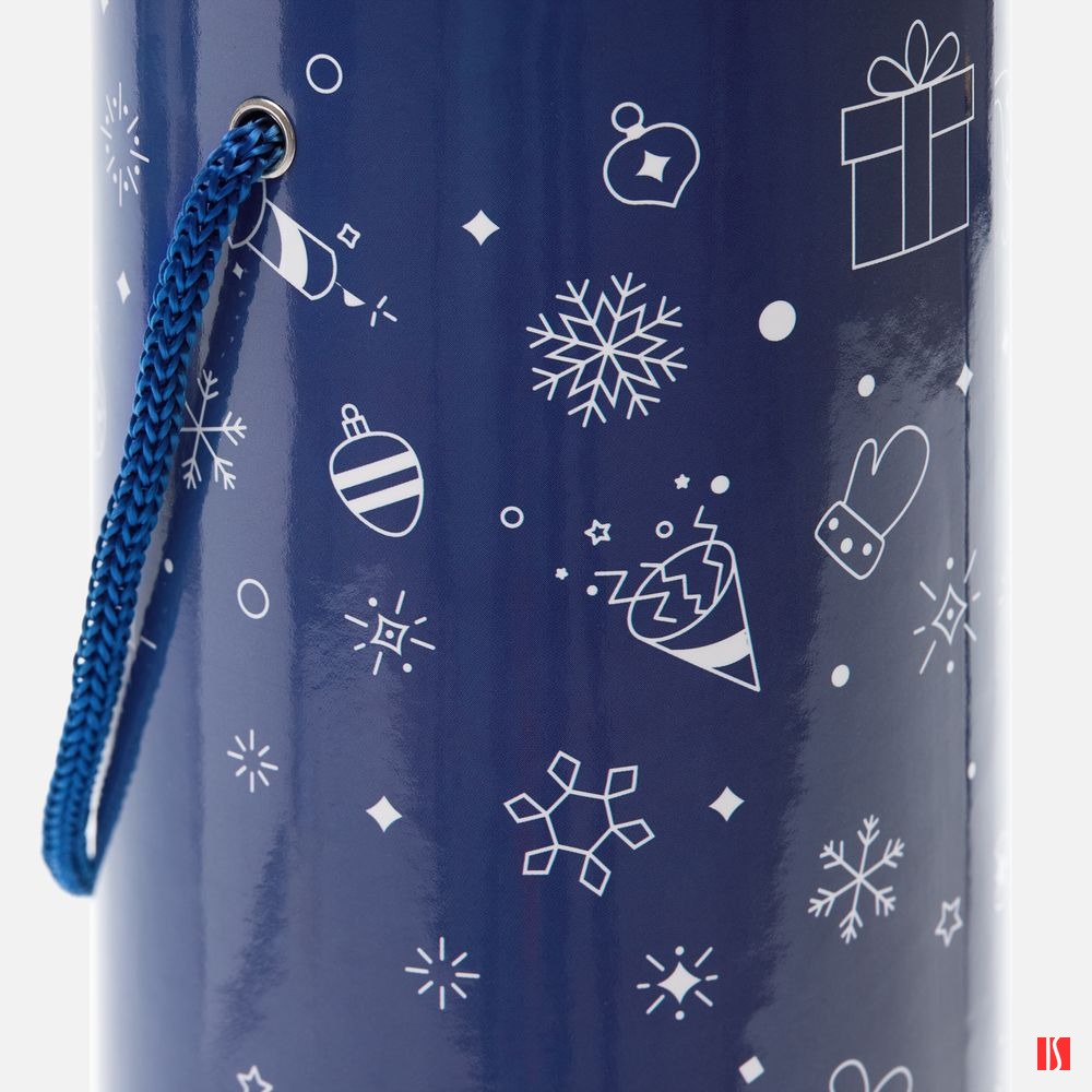 Заказать с нанесением логотипа от компании «Синтезис». Подарочный тубус для бутылки Snowlace с новогодним паттерном станет стильным дополнением к праздничному презенту. На тубусе специально оставлено место под нанесение логотипа.