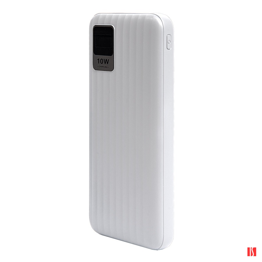 Внешний аккумулятор имеет пластиковый матовый корпус с ЖК-дисплеем, который покажет оставшийся уровень заряда в любой момент. Пауэрбанк заряжается через универсальный порт Type-C или Micro-USB и отдает энергию через два классических порта USB. Благодаря встроенному в корпус дисплею, следить за расходом батареи стало удобнее. Заряд показывается в процентах.