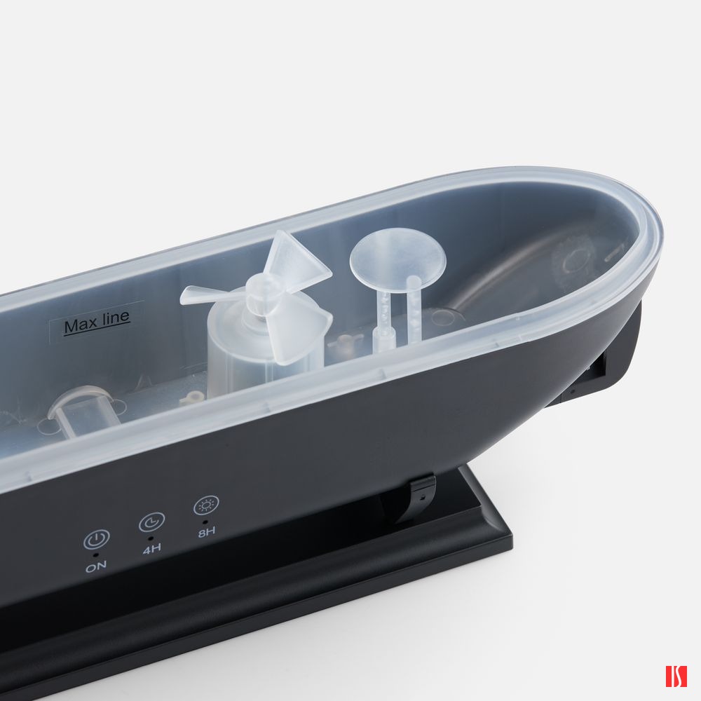Отличительная черта модели Steam Stream — эффектный дизайн в виде парохода. Благодаря оптическому эффекту влага вырывается из труб на палубе, словно дым, — создается умиротворяющее и завораживающее зрелище.