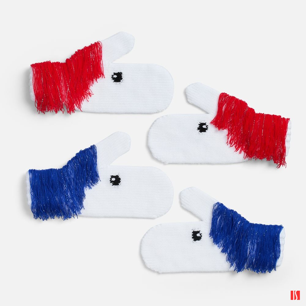 «Игогошки» — веселые варежки прямиком из детства! В такой дружной компании сразу хочется побежать на новогоднюю елку, лихо прокатиться с горки или поиграть в снежки. Грива у этих лошадок игриво колышется яркой бахромой на белоснежном фоне, а озорные глазки так и влюбляют в себя — такой задор сразу передается счастливому обладателю варежек, стоит их только надеть!