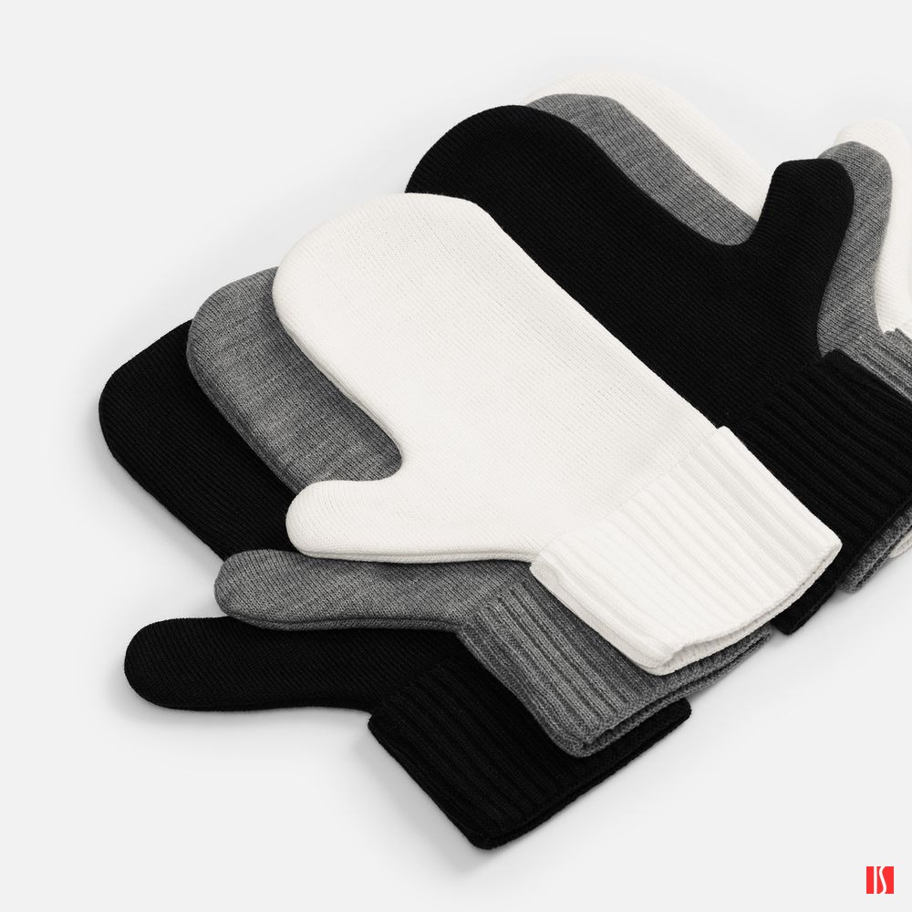 Двухслойные варежки из акриловой пряжи с широким отворотом.