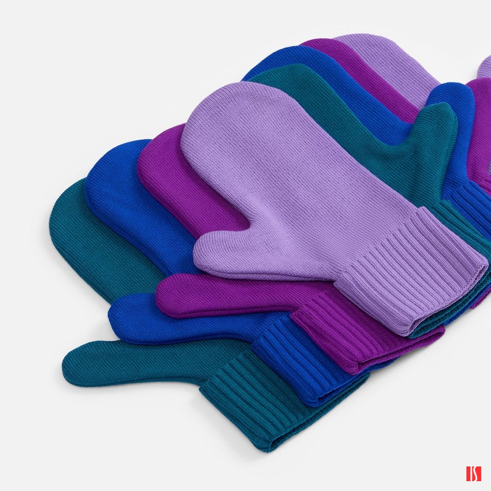 Двухслойные варежки из акриловой пряжи с широким отворотом.