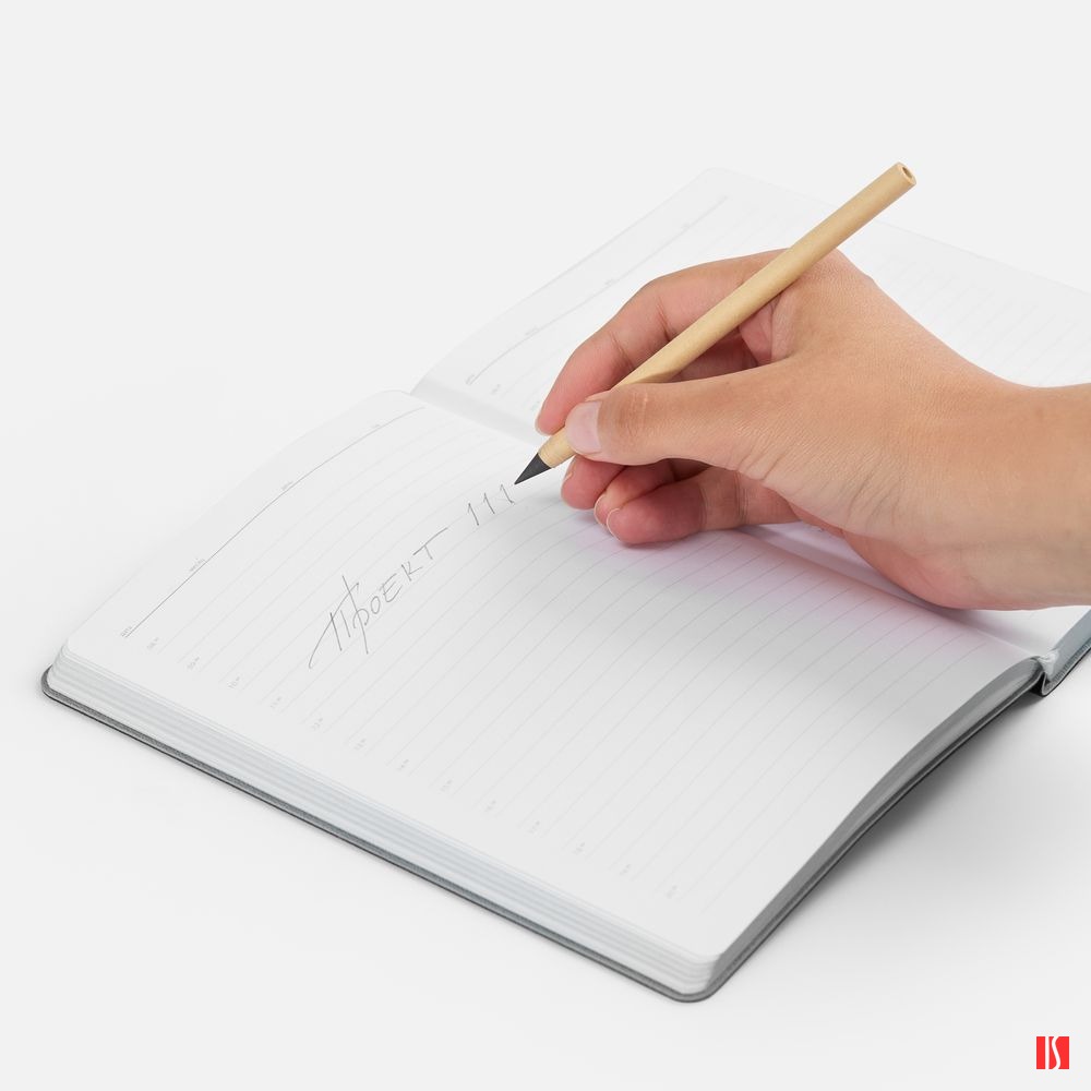 Стержень изготовлен из сплава графита со свинцом и не подлежит замене. Соответствует типу H (твердый). Навивка бумаги на стержень может немного отличаться, что делает каждый карандаш уникальным. Заказать с нанесением логотипа от компании «Синтезис».