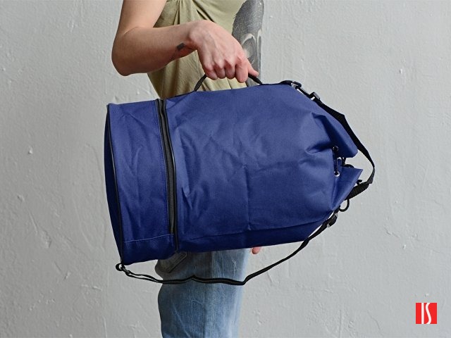 Вещмешок с водонепроницаемой пропиткой, кулиской, боковой ручкой и регулируемым плечевым ремнем. Отдельное нижнее отделение на молнии. Заказать с нанесением логотипа от компании «Синтезис».