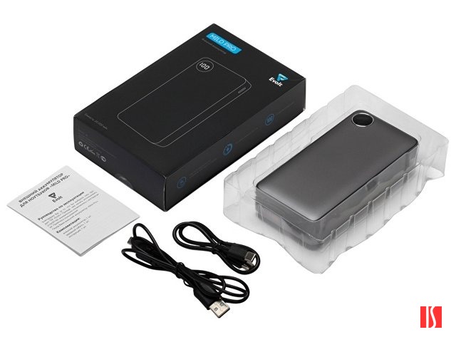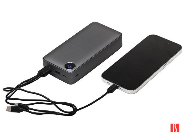 Заказать с нанесением логотипа от компании «Синтезис». Внешний аккумулятор с новым покрытием металлик soft-touch и цифровым дисплеем. Приятное бархатистое покрытие дополнено эффектом металлического блеска. Обе стороны можно украсить полноцветным УФ изображением. Ёмкости 20000 мАч хватает для зарядки смартфона, планшета, наушников и других гаджетов на всю неделю и больше. Поддержка быстрой зарядки устройств и 3 выходных порта подойдет современному человеку, так как никто не любит ждать. На фронтальной части расположен цифровой дисплей, показывающий текущий заряд аккумулятора в процентах. Функция быстрой зарядки будет отображаться на дисплее зелеными буквами PD (Power Delivery). При первом включении дисплей может "отставать" от реального заряда аккумулятора, но после первого же цикла разрядки-зарядки повербанка он настроится автоматически. Имеется 3 выходных разъема (USB-A * 2, USB-C) и 2 входных (USB-C, micro USB). Кабель с поддержкой быстрой зарядки (USB-C - USB-C) и универсальный кабель 3-в-1 в комплекте (Lightning, micro USB, USB-C). Можно брать в самолёт.