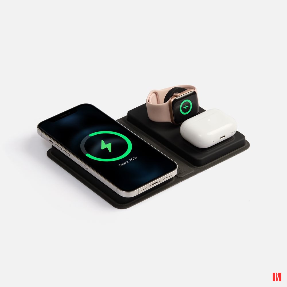 reCover совместим со всеми смартфонами, поддерживающими технологию беспроводной зарядки Qi. Также предусмотрено место для зарядки часов Apple Watch и наушников. Зарядка начнется автоматически при размещении устройств на индукционной площадке. Устройства также можно заряжать при подключении по кабелю USB Type-C.