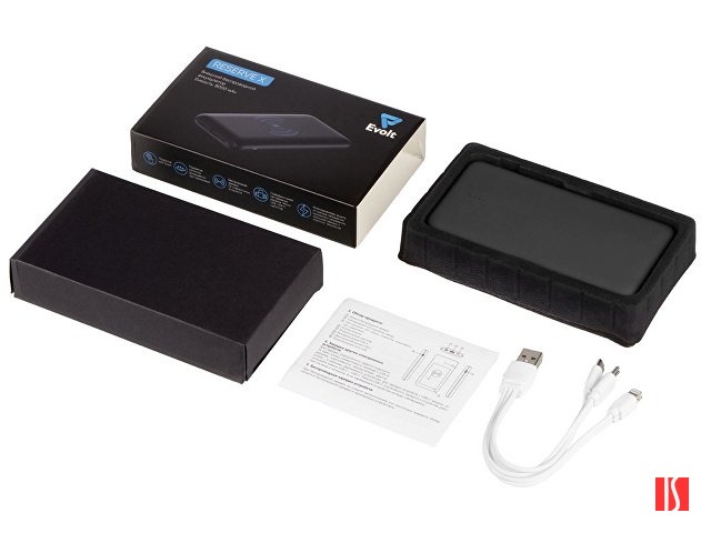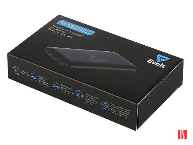 Заказать с нанесением логотипа от компании «Синтезис». Корпус внешнего беспроводного аккумулятора Reserve X от Evolt покрыт soft touch, а при гравировке открывает подсветку логотипа. Гравировку можно компоновать с УФ-печатью, что позволит создать интересное сочетание подсвеченного контура и цветного изображения. Это — не единственный плюс: Reserve X имеет беспроводную зарядку Qi-совместимых устройств, а еще — многоуровневую защиту от нестабильного напряжения и замыканий, которая обезопасит и аккумулятор, и заряжаемый гаджет. Зарядить повербанк можно через 3 порта, зарядить от него устройство — через 2.