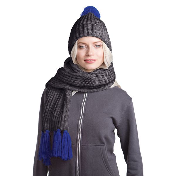 Вязаный комплект шарф и шапка "GoSnow", антрацит c фурнитурой, темно-синий, 70% акрил,30% шерсть