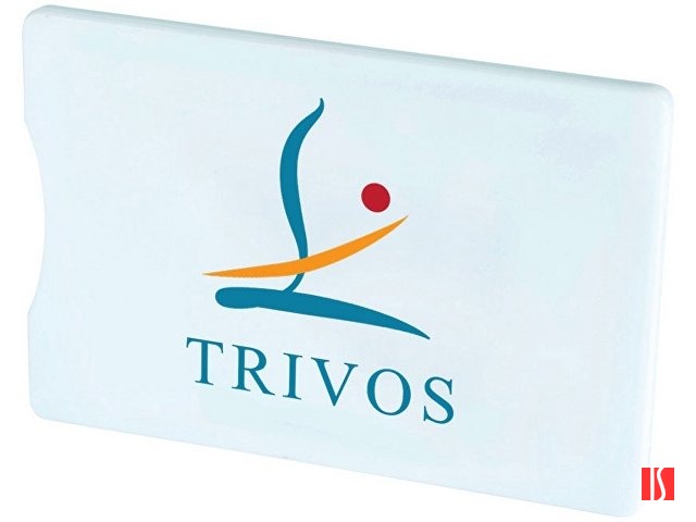 Защитный RFID чехол для кредитной карты. Благодаря RFID защите чехол надежно защитит вашу карту от несанкционированных транзакций. Чехол достаточно тонкий, так что вы можете держать его в бумажнике, сумочке или в кармане. Большое место для нанесения. Пластик. Заказать с нанесением логотипа от компании «Синтезис».