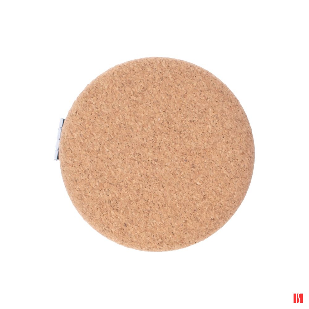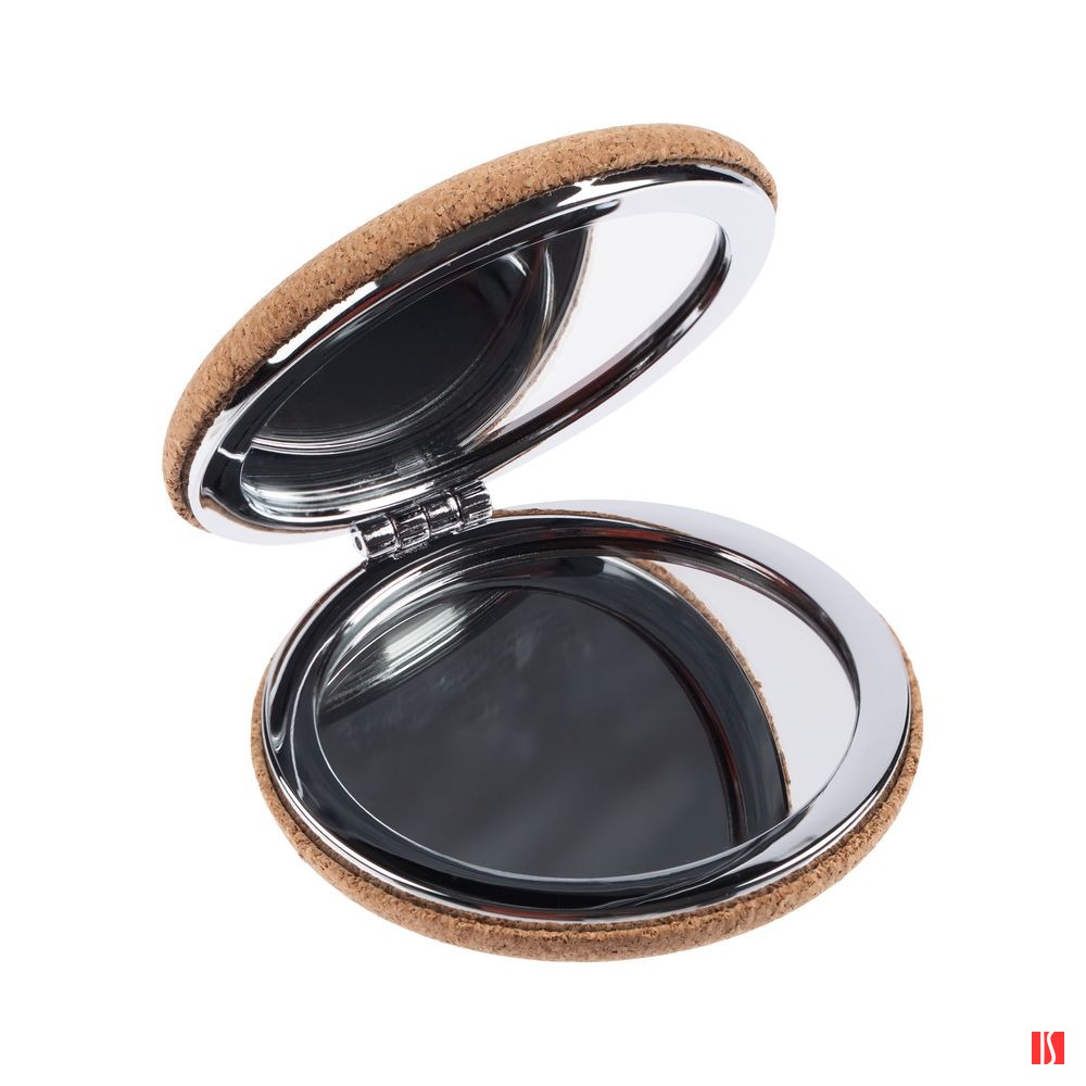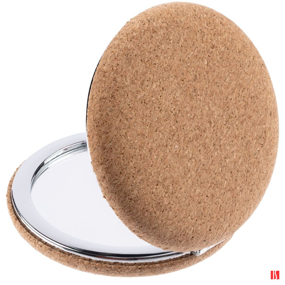 Заказать с нанесением логотипа от компании «Синтезис». Двойное зеркало в корпусе из пробки на магните: обычное и увеличивающее.
