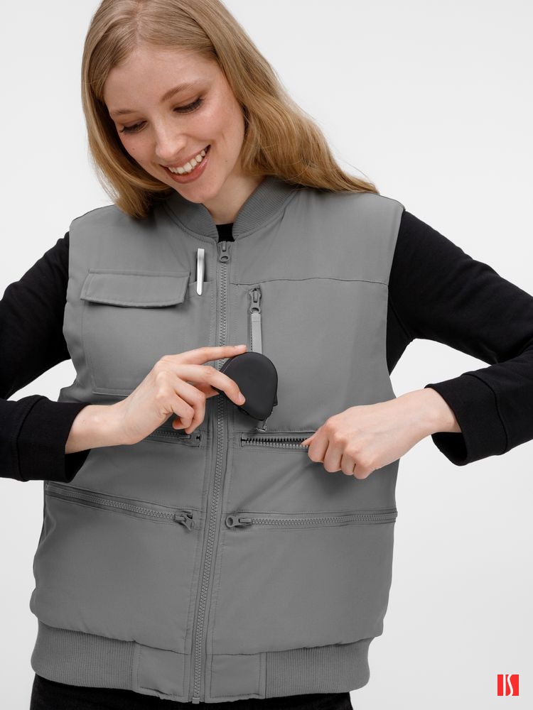 - 8 функциональных карманов, из них на передней части: 1 карман с клапаном для документов/рации, 1 карман для ручки, 5 вместительных на молнии, а так же 1 карман под планшет на молнии на спинке жилета