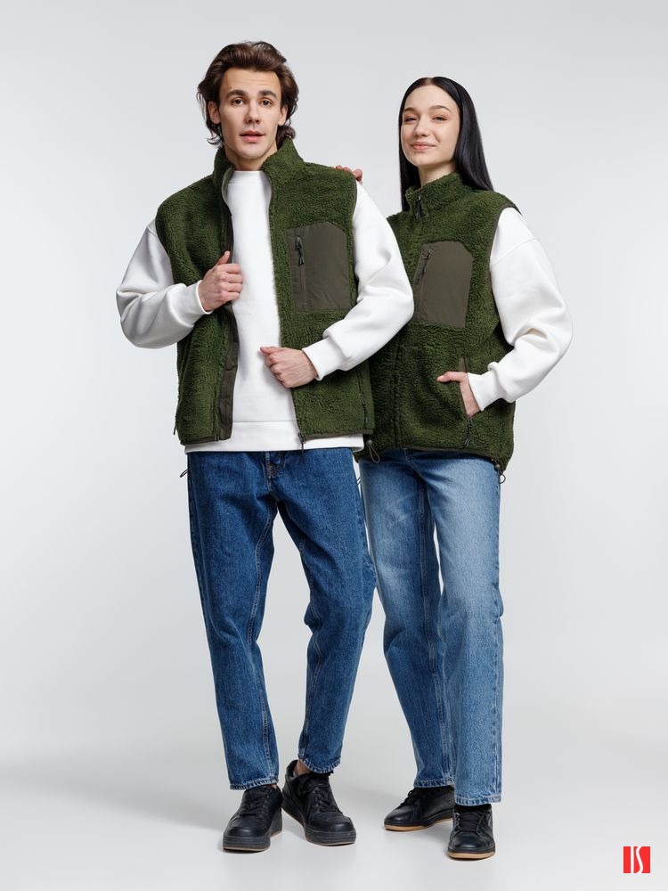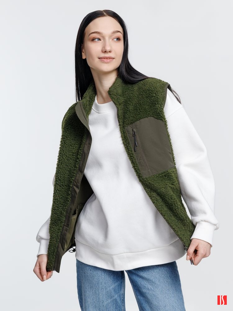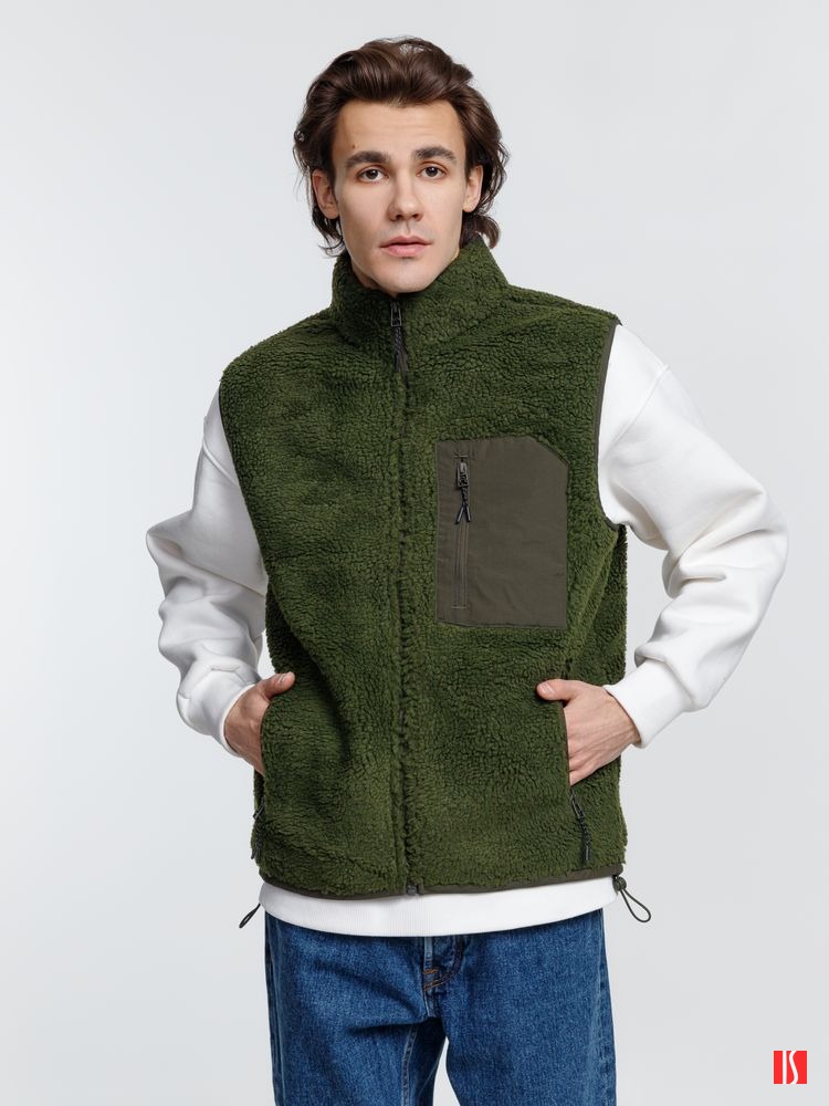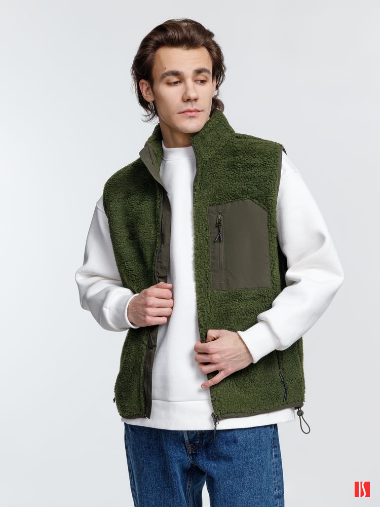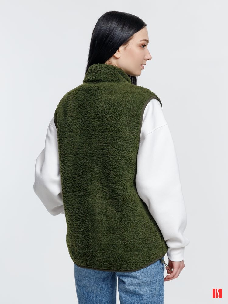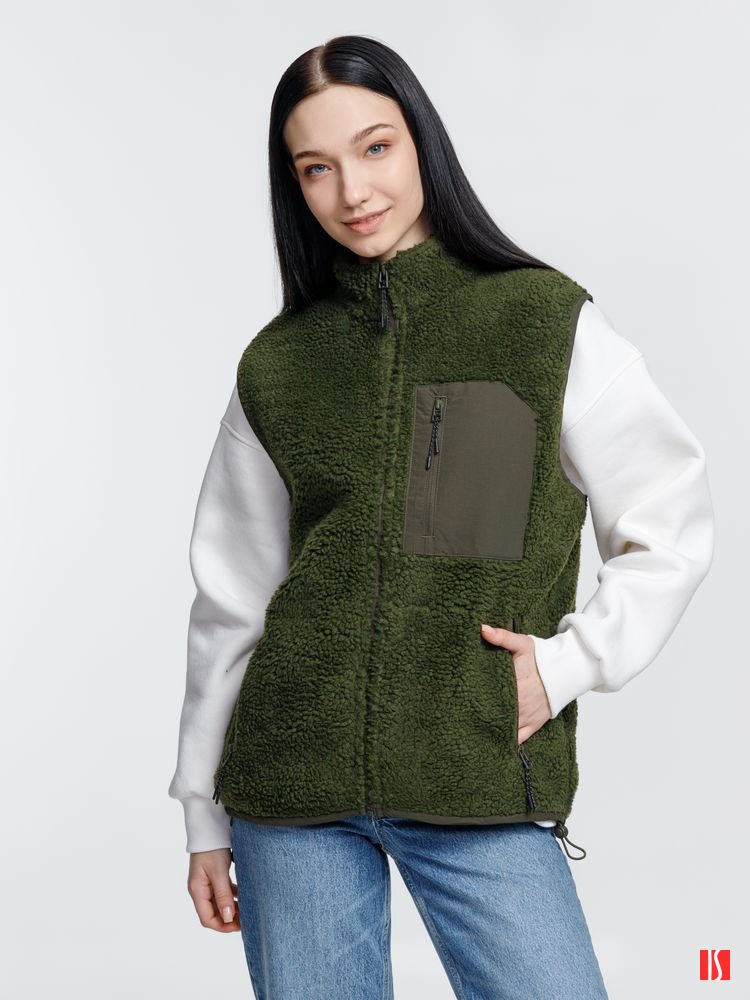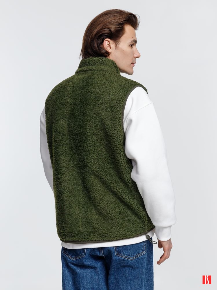 Заказать с нанесением логотипа от компании «Синтезис». Жилет унисекс из фактурной искусственной шерпы с гладкой отделкой из таслана.