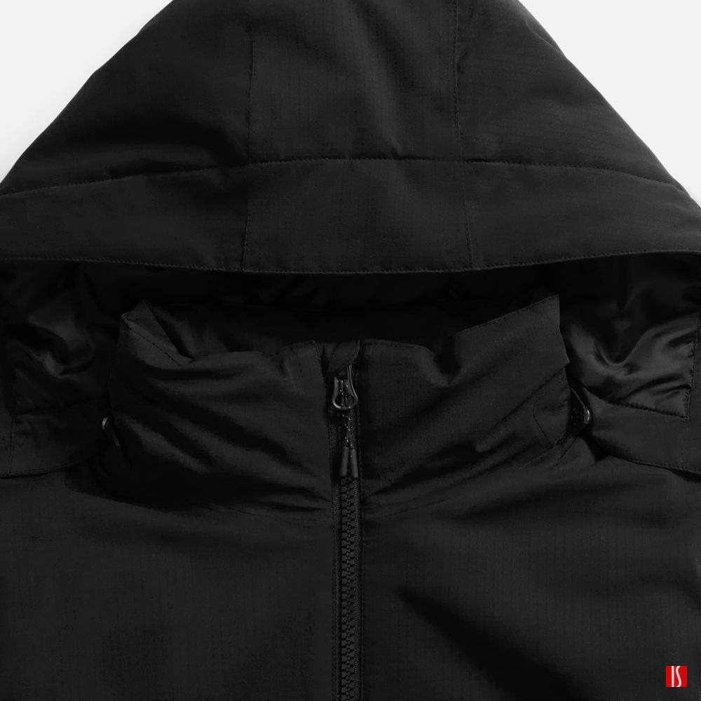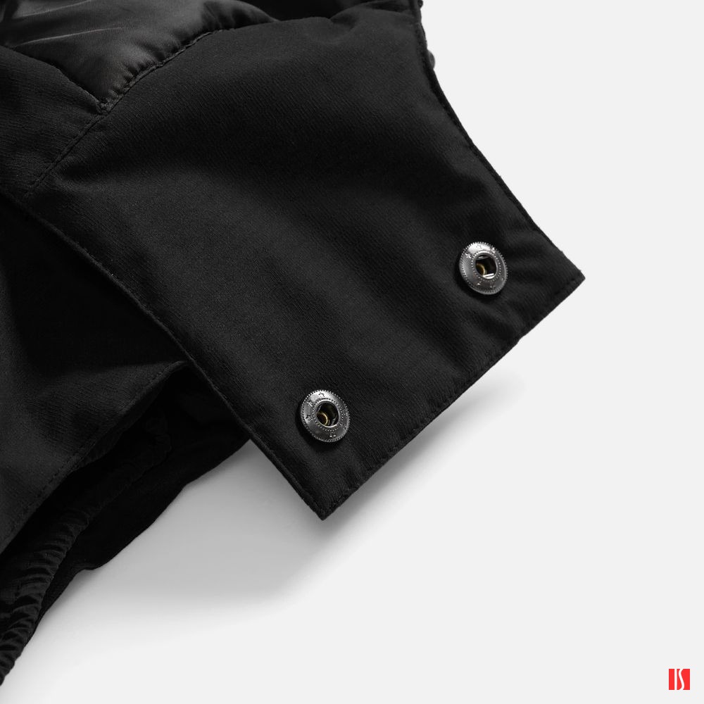 - Отстегивающийся капюшон с утяжкой и кнопками для плотного прилегания и защиты горла