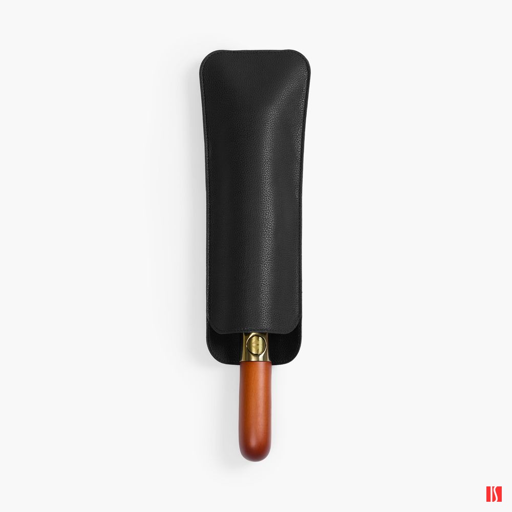 - Деревянная прямая ручка с кнопкой открытия и закрытия зонта