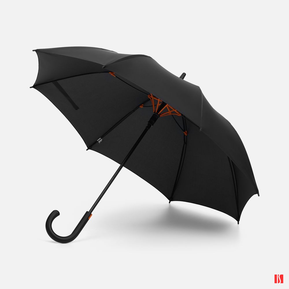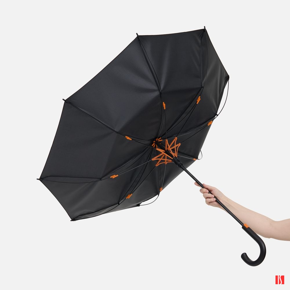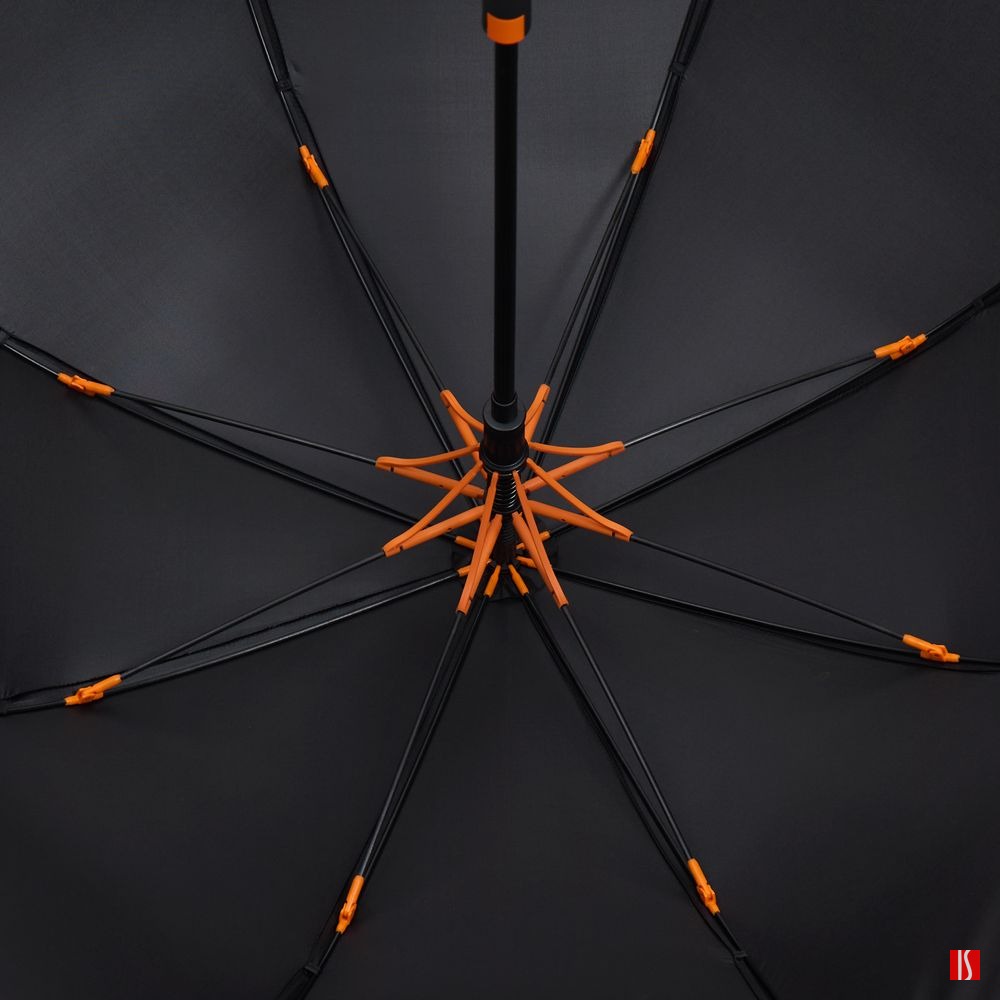 Зонт-трость Hidecolor с цветными спицами, черный с оранжевым